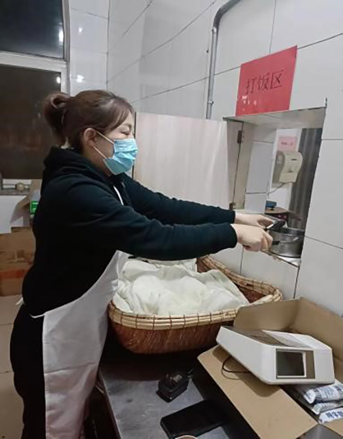 以前后勤保障部每天只準(zhǔn)備兩頓飯,而且夜班吃飯的人不算多,可現(xiàn)在500多人封控在單位,一天要為這些人準(zhǔn)備三頓飯,工作量增加了兩倍多。初文一邊切著菜,一邊笑著說:“廚師大哥們和幫廚大姐們起早貪黑,咬牙堅(jiān)持工作,我們不僅要讓大家吃飽還要吃好。”