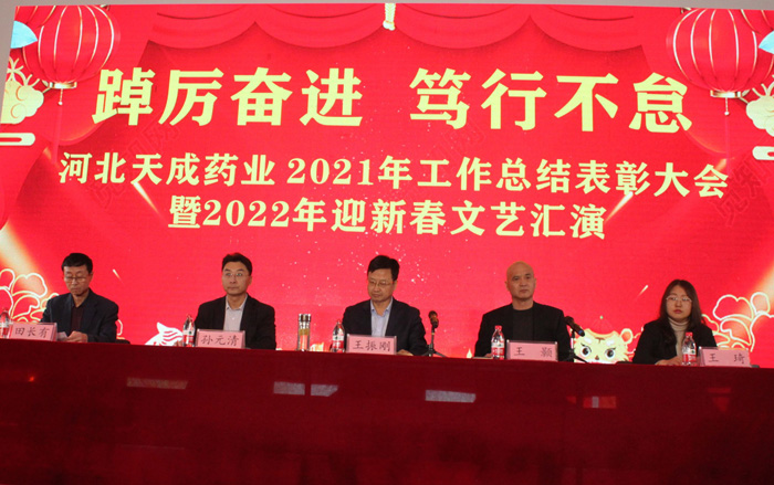 2021年已然過去,回顧這一年,我們與黨同慶百年華誕,我們細(xì)數(shù)黨和人民取得的累累碩果。盤點(diǎn)這一年,天成藥業(yè)緊跟黨的領(lǐng)導(dǎo),在踐行“制好藥,為人民”的征途上,戮力同心,奮勇拼搏,攻堅(jiān)克難,天成人同樣取得了令人欣慰的成績(jī)。站在兩個(gè)百年交匯處,感悟百年光輝史,賡續(xù)奮斗寫華章。為豐富職工文化生活,營(yíng)造喜慶、感恩。拼搏的文化氛圍,展現(xiàn)天成藥業(yè)奮發(fā)有為的精神風(fēng)貌,1月25日, 公司舉辦了“踔回奮進(jìn).篤行不息。一起向未來”--2021年工作表彰大會(huì)暨2022年迎新春職工文藝匯演活動(dòng)。工作總結(jié)大會(huì)上30余個(gè)集體或班組以及100余名干部員工受到了表彰。